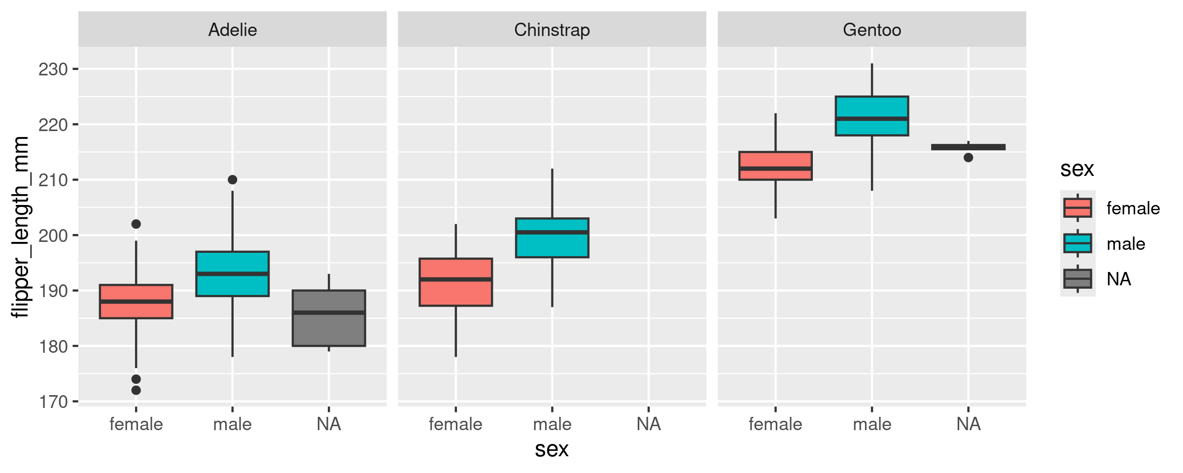 g2 <- ggplot(data = penguins, aes(x = species, y = flipper_length_mm)) +